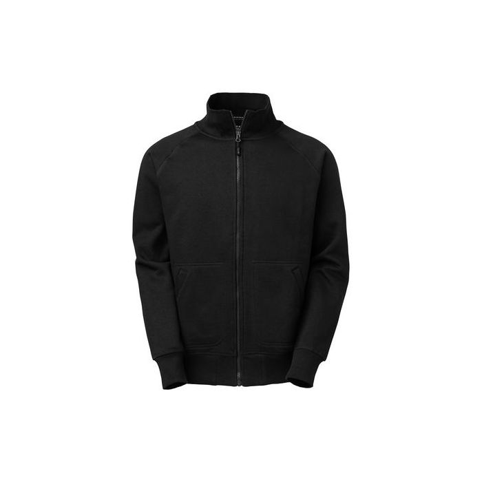 Collegejacka med hel dragkedja. Borstad insida och raglanärm. Elastisk mudd i krage, ärmslut och nederkant. Dekorativa stickningar runt frontfickor och mudd. 80% bomull 20% polyester