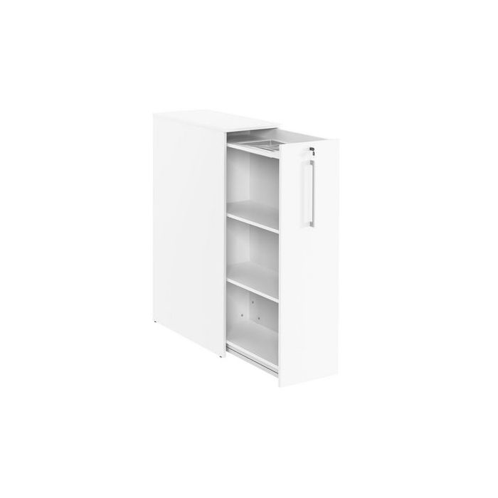 Produkten uppfyller Möbelfaktas kravspecifikation gällande kvalitet, miljö och socialt ansvar. Sidoskåp/Tower är perfekta skåpet för att kunna skapa dold förvaring samt för att skilja av mellan arbetsplatser. En praktisk möbel där utdragsdelen glider på kullagerförsedda gejdrar. Justeringsfötter finns för att kunna få en rak möbel även vid lite ojämna golv. Skåpen finns höger eller vänster och du väljer vilket när du sitter vid ditt skrivbord. Det är utrustat med praktiskt pennfack. Materialet är stryktåligt laminat vilket är lättskött och färgbeständigt år efter år. Skåpen är monterade och bara att avemballera och ställa på plats. Ryggen är 18 mm vilket gör den lämplig att ha ute i rummet och behöver inte ställas mot en vägg. 400x800x1320 mm.