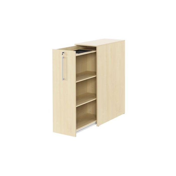 Produkten uppfyller Möbelfaktas kravspecifikation gällande kvalitet, miljö och socialt ansvar. Sidoskåp/Tower är perfekta skåpet för att kunna skapa dold förvaring samt för att skilja av mellan arbetsplatser. En praktisk möbel där utdragsdelen glider på kullagerförsedda gejdrar. Justeringsfötter finns för att kunna få en rak möbel även vid lite ojämna golv. Skåpen finns höger eller vänster och du väljer vilket när du sitter vid ditt skrivbord. Det är utrustat med praktiskt pennfack. Materialet är stryktåligt laminat vilket är lättskött och färgbeständigt år efter år. Skåpen är monterade och bara att avemballera och ställa på plats. Ryggen är 18 mm vilket gör den lämplig att ha ute i rummet och behöver inte ställas mot en vägg. 400x800x1320 mm.