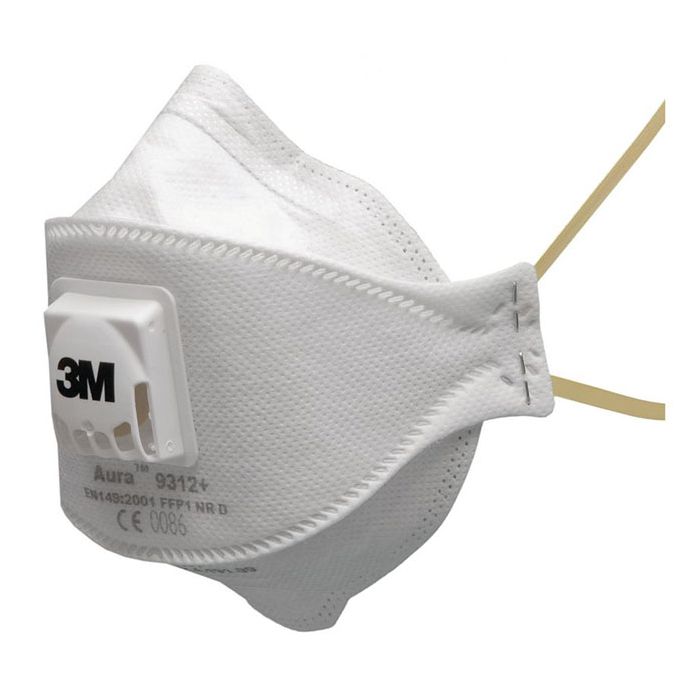 3M™ Aura™ filtrerande halvmask 9312+ är ett FFP1-klassat andningsskydd med en hopvikbar design med tre paneler, lågt andningsmotstånd och en präglad, skulpterad övre panel som kan motverka imbildning på glasögon. Den har ett innovativt hakband för enkel justering och huvudbanden är färgkodade för snabb och enkel identifiering. Ventilen 3M™ Cool Flow™ kan motverka värmeuppbyggnad
