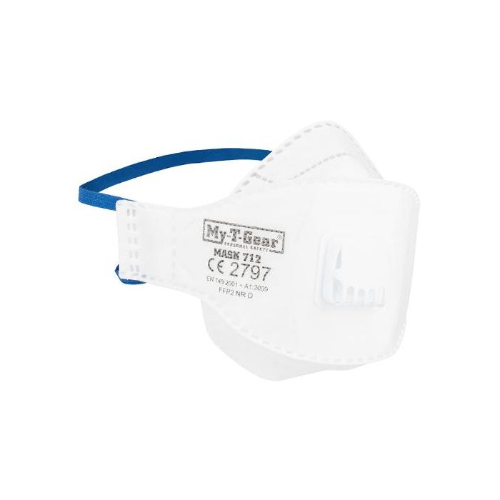 My-T-Gear 712 är en lätt och bekväm 3-panels plattvikt dammmask med utandningsventil. Den kombinerar fördelarna med både formpressade och plattvikta masker, vilket ger bra passform och en rymligare andningskammare. Masken är enkel att bära, använda och förvara. Filtermaterialet är utvecklat för att motstå igensättning och klarar dolomittestet, vilket ger lågt andningsmotstånd och gör att masken kan användas längre än många andra FFP2-masker. Mjuka yttre och inre lager ger god komfort. Den justerbara näsklämman är diskret placerad och tillsammans med näsdelen i mjukt skum ger den en säker och bekväm tätning. Huvudbanden är utformade för att ge en stabil och korrekt passform. Utandningsventilen minskar värme och fukt inuti masken och ökar komforten vid längre användning. Varje mask är individuellt förpackad för att hålla den ren fram till användning. Masken kan användas tillsammans med skyddsglasögon, hjälm, glasögon och hörselkåpor. Produkten är CE-märkt. Godkänd enligt: EN 149:2001 + A1:2009, FFP2 NR D Antal: 15st/ fp, individuellt förpackade Med ventil CE-märkt
