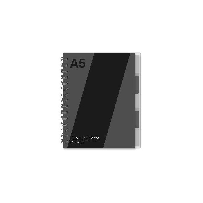 Anteckningsblock i A5-format med lätt och smidigt papper på 70g. Blocket innehåller 120 blad och är utrustat med fem praktiska avdelare, vilket gör det enkelt att organisera dina anteckningar. Perfekt för skola, arbete eller kreativa idéer!