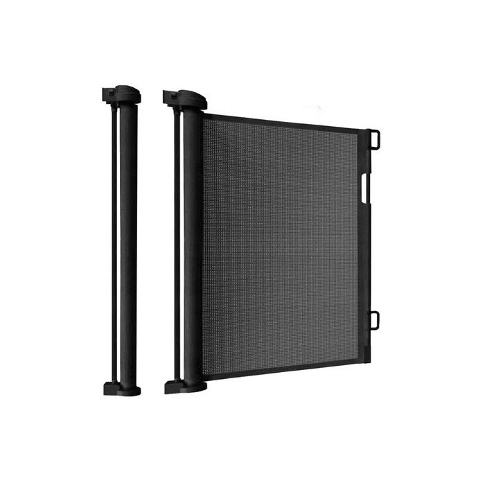 Stilren säkerhetsgrind i premiumkvalitet som dessutom är lätt att använda, kan öppnas och stängas enkelt av en vuxen och tar minimalt med plats när den inte används. Med dess flexibla utformning passar grinden bra som såväl barngrind som hundgrind.Den inbyggda rullgardinsfunktionen gör det lätt att dra ut grinden till önskad längd. När den inte används rullas den enkelt ihop och tar därför väldigt lite plats samtidigt som det minskar klämrisken. Den inbyggda låsfunktionen låter dig låsa grinden såväl i öppet som stängt läge. En låsindikator visar om grinden är låst eller olåst.Grindens flexibla funktion gör den perfekt för att avgränsa rum, korridorer, dörröppningar m.m. för att förhindra tillgång till utrymmen. Den eleganta och stilrena designen gör att grinden passar i de flesta hem och miljöer.Kan monteras på såväl sten, betong som träväggar.