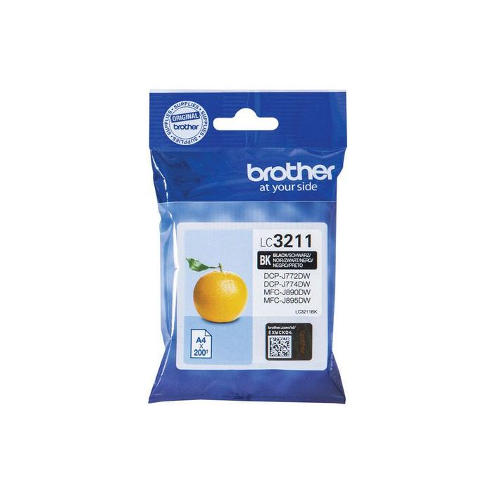 Brother LC3211BK Svart bläckpatron ger alltid ett mycket bra resultat. Bläckpatroner från Brother är utformade för att ge ett utmärkt resultat tillsammans med skrivare från Brother. LC3211BK har en kapacitet på upp till 200sidor. Bläckpatronen passar till inkbenefit-skrivare. Skriv ut allt från enkla papperskopior till professionella utskrifter. Bläckpatronerna innehåller ett bläck som är snabbtorkande och kladdfritt.