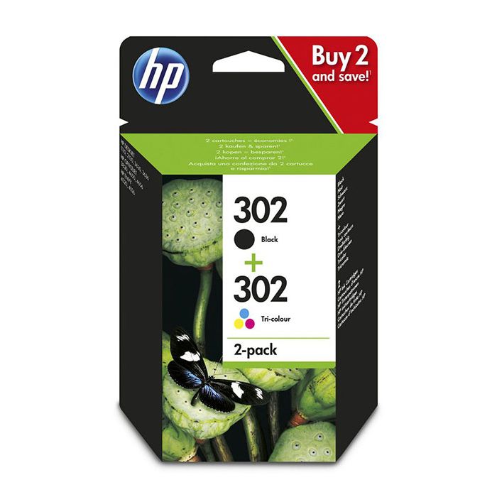 - Innehåller: 1 x HP 302 svart bläckpatron (upp till 190 sidor), 1 x HP 302 färg bläckpatron (upp till 165 sidor)
