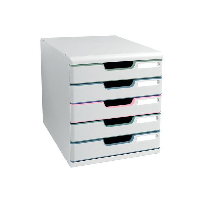ModuloA4+5 drawers Autentik Det bästa av design kombinerat med det bästa av miljöansvar. En perfekt vit tillverkad av plastavfall. Autentik-sortimentet erbjuder därför produkter som ger använd plast nytt liv. En innovation från Exacompta. Med skandinaviska influenser och färgerna vitt, candy pink, salvia och gråblått kommer denna serie att smälta in i inredningen på både arbetsplatser och hemmakontor. Modulo är ett elegant och funktionellt arkiveringssystem som består av 5 lådor för arkivering av dokument i A4- och A4+-format, 24x32 cm elastiska fickor, kuvert i storformat och till och med arkivmappar tack vare den höga lådhöjden. Den är lämplig för användning på kontor eller i skolan. Modulo kan ställas bredvid varandra och staplas tack vare de medföljande fästklämmorna. De har utbytbara lådor, oavsett modell. Lådfronterna är stängda för att hålla dokumenten dammfria. Lådorna är behagliga att använda, de glider tyst och är utrustade med ett säkerhetsstopp. Med respekt för miljön är denna produkt tillverkad av återvunnen plast från hushållsavfall och är därför Blue Angel-certifierad. 25 års garanti.