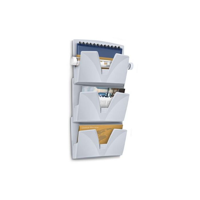 Perfekt för att hålla ordning på dokumenten. Stilrent fack som erbjuder tre separata avdelningar för enkel sortering. Den ljusgrå färgen ger ett modernt och professionellt intryck, vilket gör det idealiskt för både hem och kontor. Håll dina papper organiserade och lättillgängliga med vårt funktionella och eleganta blankettfack.