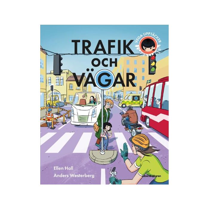 - och när röret är fixat behöver vägen asfalteras igen. Vega blir nyfiken! Nästa dag får hon följa med Jenny på jobbet för att lära sig mer om hur man bygger nya vägar oc h hur trafiken fungerar. Vägar är viktiga för att vi ska kunna ta oss fram i staden, men det är många som ska dela på utrymmet: bila r, bussar, cyklar och fotgängare. Hur gör vi för att alla ska samsas och undvika olyckor? Vem bestämmer egentligen var en väg ska gå ? Och varför ser gatorna ut som de gör? Följ med på en spännande upptäcktsresa längs stadens vägar! En lärorik och rolig faktabilde rbok med detaljrika illustrationer