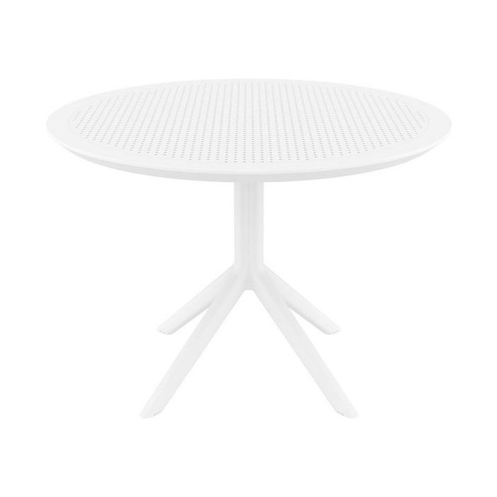 SKY Table Ø105 är ett mycket robust och tåligt bord som fungerar utmärkt för både inomhus och utomhusbruk. Bordet passar både som matbord på balkongen, trädgården, till restaurang och café. SKY bordet är tillverkat av Polypropen som har förstärkts med glasfiber. Bordet är designad för att motstå väderpåverkan och har avtagbara ben vilket gör det smidigt att transportera och förvara. Rymmer 4 personer. Lämplig för både inom- och utomhus. UV-beständigt och vattenavvisande. Tillverkad i Europa