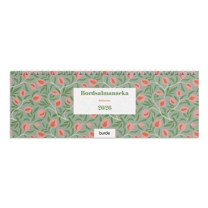 Kalender 2026 från Burde. Format: 297x105 mm. Layout: Stående. Vecka/uppslag. Kalendarium: 2025-12-15