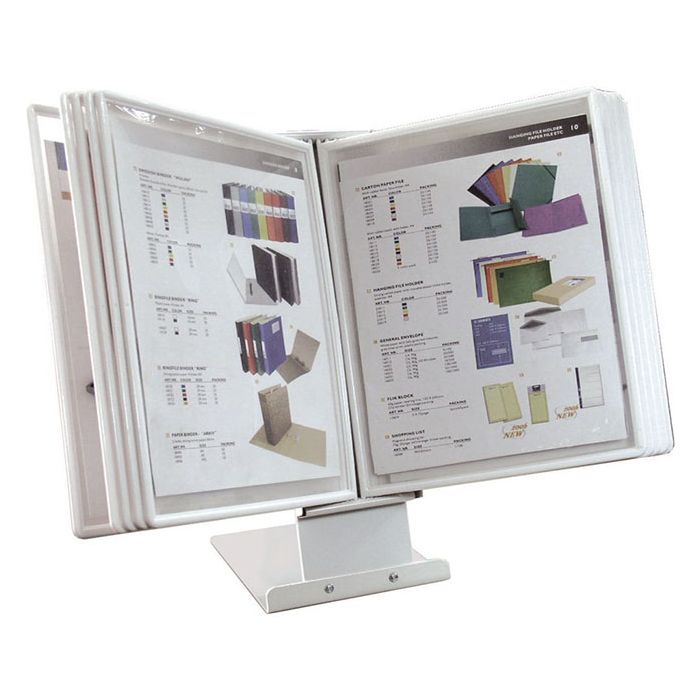 Bordställ av stål för 10 paneler. Vitt. Justerbar i höjdled. A4-format, lätt att montera med skruvmejsel. 10st paneler i vit ingår