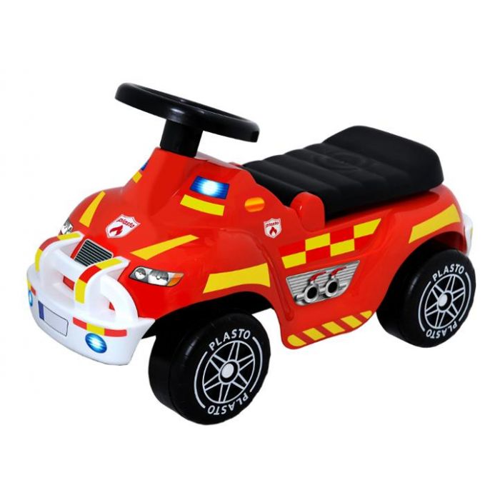 Redo för utryckning – kör, lek och förvara smart! Plasto sitt- och sparkbil i form av en brandbil är den perfekta leksaken för små hjältar. Med tysta hjul för smidig körning inomhus och utomhus samt praktisk förvaring under sitsen för små skatter. Robust design och klassisk brandbilslook gör den både rolig och funktionell. Sitthöjd 22cm Längd 60cm Tillverkad i Finland Rekommenderad ålder: från1 år