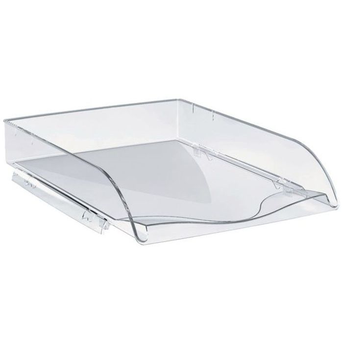 Brevkorg för A4-format öppen längs kortsidan. Brevkorgen är tillverkad av polystyrenplast och varje fack kan staplas direkt ovanpå varandra eller med distanser som ökar höjden mellan varje fack med 3,6 cm.