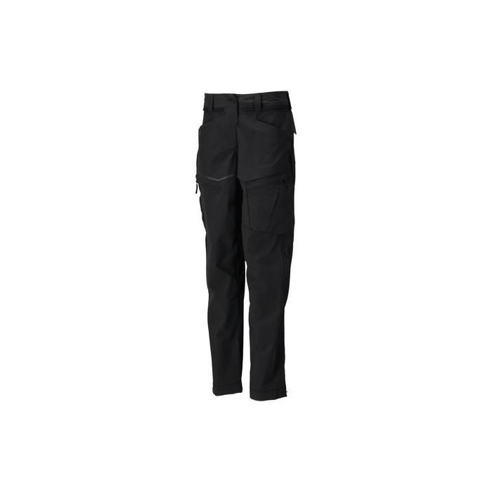 Arbetsbyxa för dam som kombinerar funktion och komfort. Tillverkade i ett lätt och slitstarkt stretchtyg med vattenavvisande yta, idealiska för krävande arbetsmiljöer. Förberedda för hängfickor med det praktiska Click Pocket System. Strategiskt placerade ventilationshål och nätpaneler med dragkedja på sidorna ger optimal andningsförmåga. Byxorna har bältesstroppar och en blixtlåsstängning för en säker passform. Flera praktiska fickor, inklusive framfickor, en bakficka med lock, telefonficka med blixtlås, och fickor med blixtlås samt lock på låren, ger gott om förvaringsmöjligheter. Justerbara fotvidder med tryckknappar kompletterar denna mångsidiga och funktionella design.