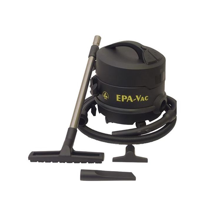 - säker, kraftfull och jordad för full kontroll. Kraftfull 800 W ESD-dammsugare tillverkad i konduktiv polypropylen. Motorn jordas via den 10 m långa nätsladden och chassit via de avledande hjulen för säker statisk urladdning. Levereras komplett med golvmunstycke, två mindre munstycken i avledande polypropylen samt en 2,5 m avledande slang. Dammsugaren har ett EPA-filter (Efficient Particulate Air), ett typ av luftfilter som effektivt tar bort partiklar från luften, designat för att fånga minst 85% av partiklar som är 0,3 mikron eller större. Kabellängd: 10 m 800 W Konduktiv polypropylen EPA-filter (Efficient Particulate Air)