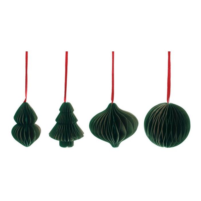 Dekorera till årets julfest eller granen med denna vackra honeycomb tillverkat av FSC-mix papper. Kommer i ett fyrpack med olika former. Grön