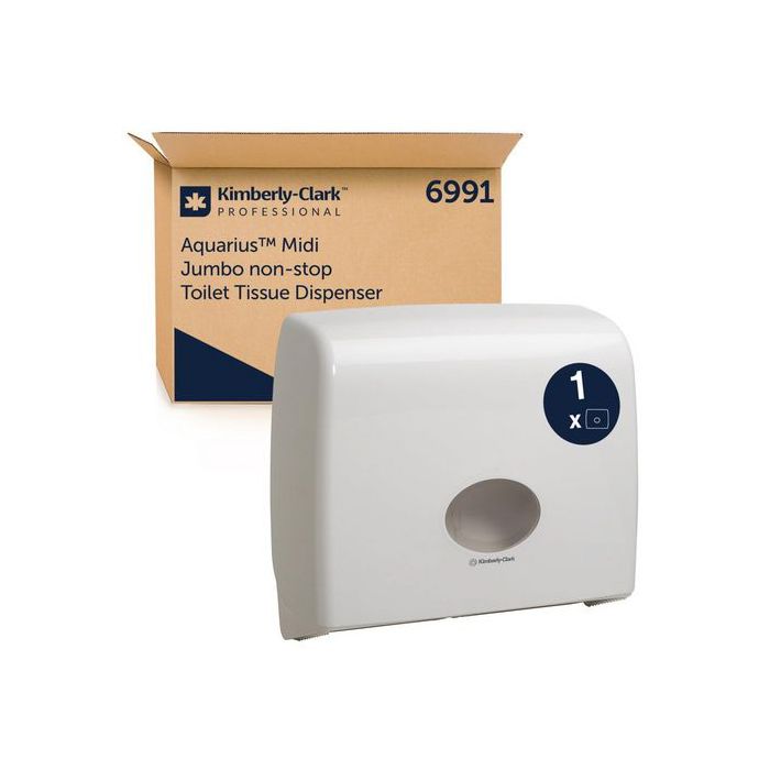 Innovativa och snygga, i kombination med exceptionell prestanda, välj Aquarius™ dispensers. Del av ett koordinerat tvättrumssortiment, designat för att fungera i perfekt harmoni med Kleenex® och Scott® toalettpappersrullar. Aquarius™ Jumbo Non-Stop toalettpappersdispenser erbjuder en lösning med hög kapacitet, med minimalt underhåll, idealisk för de mest trafikerade tvättrummen. Lätt att ladda med mindre tid åt att fylla på, inklusive en bytesrulle som aldrig tar slut för en kontinuerlig tillförsel. Kompatibel med, rekommenderas: 8515. Även kompatibel med: 8573, 8501, 8625, 8404, 8503, 8572, 8613, 8625. Dispenserstorlek 38,2cm (L) x 44,6cm (B) x 12,9cm (D). Finns även i svart (kod 7184).