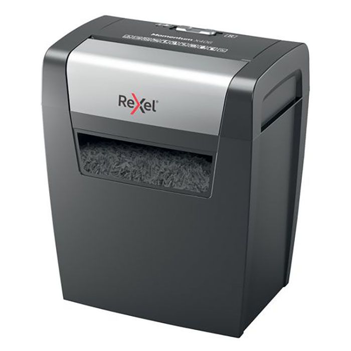 Med kraften att makulera mer med Rexel Momentum dokumentförstörare. Rexel Momentum X406 dokumentförstörare är idealisk för 1-2 användare. Den kan makulera upp till 6 ark i en inmatning med en driftstid på 3 minuter. Kan förstöra pappersdokument, häftklamrar och gem effektivt.