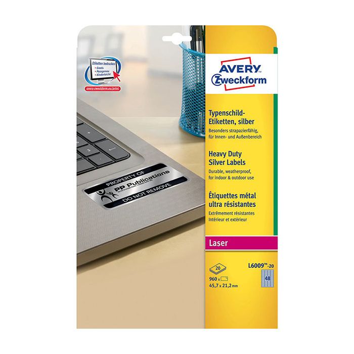 De här extrastarka, permanenta Avery-etiketterna är vädertåliga så att de kan användas för inomhus- och utomhusbruk, och är perfekta för att märka elektroniska enheter. Dessa tåliga, slitstarka etiketter från Avery är vädertåliga och mycket tuffare än vanliga pappersetiketter. De har extra stark vidhäftning och tål vatten, olja, smuts, UV-strålar och extrema temperaturer (-40 °C till +150 °C). De är perfekta för att märka små elektroniska komponenter eller större maskiner med företagets logotyp eller ID-kod. Lämpar sig för utskrift i de flesta svartvita laserskrivare och du kan skapa din egen personliga touch med hjälp av mallarna i programvaran Avery Design & Print. Dessa polyesteretiketter har en filmbeläggning och producerar en tydlig och skarp finish på dina utskrifter.