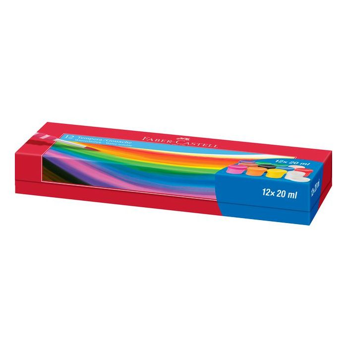 Gouachefärger 12x20ml 12 ass.Högpigmenterade färger är fyllda med pigment och skalar, flagnar inte och ger ett professionellt resul tat för unga konstnärer.Färdiga, vattenlösliga temperafärger för dagis, skolor och fritidsHögpigmenterade, ogenomskinliga färger för ett brett utbud av målnings- och blandningsteknikerFör nästan alla ytorSärskilt färgintensiv och ljussäker12 baljor med skruv lock