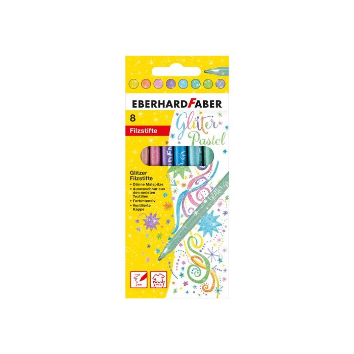 tuschpennor med glitter i praktisk kartong med stabila trycktåliga spetsar (ca 3 mm).Intensiva, vackra gnistrande färger för många kreativa projekt.Luktfritt, ofarligt vattenbaserat bläck, tvättbart i de flesta textilierFör skräddarsydda presenter fulla av fant asi
