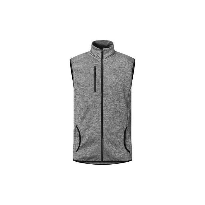 Melerad singel jersey bondad med fleece. Bröstficka och två sidfickor utan blixtlås. Fleeceväst, tillverkad i högkvalitativ melerad singel jersey som är bondad med mjuk och varm fleece. Denna väst är idealisk för lager på lager när du behöver ett bekvämt och värmande plagg till en arbetsdag som kan bjuda på både varmt och kallt väder. I den praktiska bröstfickan kan du förvara småsaker som mobiltelefon, nycklar eller andra nödvändigheter du vill ha nära till hands. De två sidfickorna utan blixtlås erbjuder extra utrymme för dina händer eller andra mindre föremål. Västen är ärmlös, vilket ger dig full rörelsefrihet och gör den idealisk att bära över exempelvis en långärmad tröja eller under en jacka för extra värme utan att kännas skrymmande. Den melerade designen ger västen en modern och stilren look.