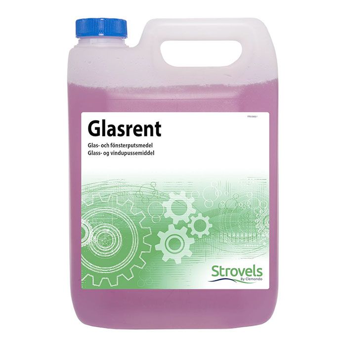 Strovels Glasrent är ett extra kraftfullt glasputsmedel med ammoniak i påfyllningsbar sprayflaska för rengöring av fönster, speglar, bilrutor, kakel m.m.