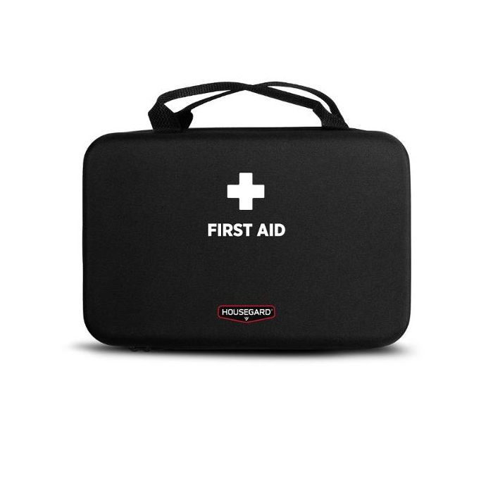 Housegard Premium är en omfattande första hjälpen-väska som täcker allt från små sår och brännskador till större skador, ögonirritation och akuta nödsituationer. Housegard Premium är en omfattande första hjälpen-väska utformad för att hantera allt från mindre sår till allvarliga skador och akuta situationer. Med sina 152 delar är den ett komplett kit för sårvård, brännskador, ögonirritation och mycket mer. Väskan är anpassad för både små och stora skador, inklusive ögonproblem, och innehåller viktiga komponenter som andningsmask, första hjälpen-filt och ögondroppar. Tack vare en tydlig färgkodning hittar du snabbt rätt utrustning och kan agera direkt när varje sekund räknas. Perfekt att ha hemma, på resan eller för den som vill vara förberedd på allt. Housegard Premium ger dig tryggheten att kunna ge snabb och effektiv första hjälpen när det verkligen behövs. Med 152 delar är denna väska särskilt anpassad för den som vill vara extra förberedd. Den innehåller både vanliga förbandsmaterial och specifika produkter för ögonvård samt livräddande utrustning som andningsduk och överlevnadsfilt. Innehåll: Småsår: 1 rulle häfta (1,25 cm x 5 m) 6 hudrengöringsservetter 6 NaCl 0,9% koksaltlösning i engångspipett 40 vattentåliga plåster (72 x 19 mm) 10 fingerplåster 20 plåster (72 x 25 mm) 10 PU-plåster (72 x 19 mm) 20 barnplåster Medelstora sår: 5 skavsårsplåster (62 x 42 mm) 1 triangelbandage (136 x 96 x 96 cm) 1 kylpåse, medium (100 g) 6 torra kompresser i pappersfilm (5 x 5 cm) 2 brännskadegel (3,5 g) 3 rullar gasbinda (8 cm x 3 m) 8 självhäftande bandage i påse (10 x 6 cm) 2 sterila sårförband (10 x 16 cm) Stora sår: 1 andningsmask för mun-till-mun-metoden 1 första hjälpen-filt 2 ögondroppar (NaCl 0,9% 15 ml) Tillbehör: 2 säkerhetsnålar 1 sax (12,7 cm) 1 metallpincett (8,8 cm) 1 par puderfria handskar 1 fästingborttagare