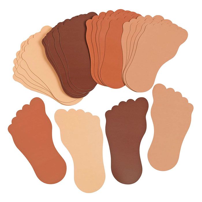 Fötter i kartong med 4 olika hudtoner.