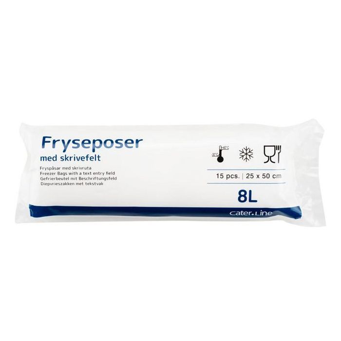 Fryspåse lämplig för frysning, med skrivfält. Livsmedelsgodkänd