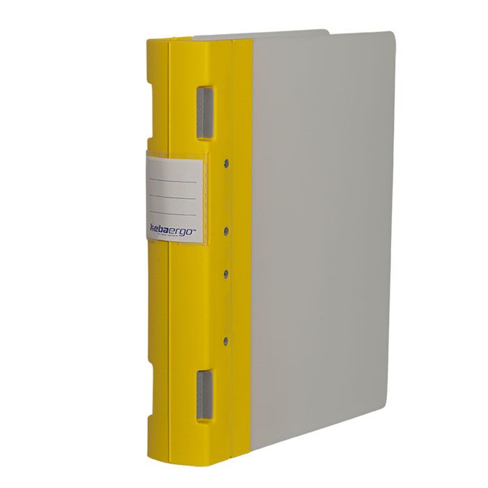 Högkvalitativ, patenterad mekanism, lätt att öppna och stänga. Kraftig pärm för tuffa tag och miljöer. Tillverkad i PP-plast. Tål lång daglig användning. Ergonomiskt utformad rygg som gör det lätt att ta ned den från hyllan. Lätt att torka av med vatten och diskmedel. Etikettmallar finns på www.keba.se. Svensktillverkad, 5 års garanti, 20 st/förp. A4, helrygg 55mm, gul/neutral.