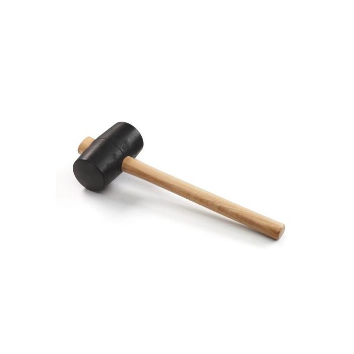 Klubba med skalle av svart massivt gummi med hårdhet 80/90 shore A. Träskaft av ask.