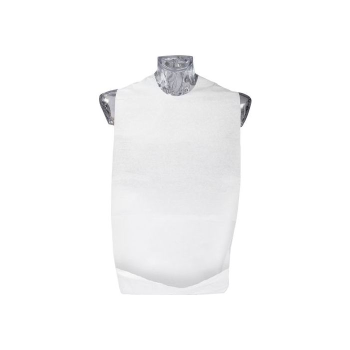 Engångshaklapp för vuxna. Används för att minimera risken för korskontaminering för vårdpersonal och användare genom att absorbera k roppsvätskor och livsmedel. Haklappen är med tejpapplikation och vändbar ficka. Detta säkerställer att fickan förblir öppen för att fånga upp mat och vätska och förhindra spill. Tejpfästet ger en mer flexibel placering av haklappen, vilket gör den idealiskt för sä ngliggande användare och det går att behålla ögonkontakten vid applicering. Genom den absorberande ytan och vätsketäta baksidan förb lir kläderna under torra och rena.