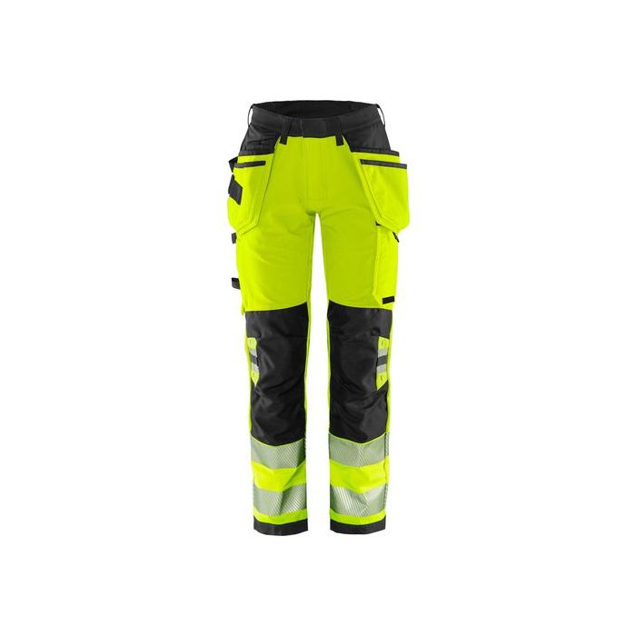 Varsel Green hantverkarbyxa stretch 2664 GSTP klass 2, dam Miljödeklarerade varselbyxor till dam i hantverkarmodell. Tillverkade i 4-vägsstretch av delvis biobaserat och återvunnet material. Bekväma arbetsbyxor med stretchpaneler i midjan och förstärkningar i utsatta partier för extra slitstyrka. Har EPD (Environmental Product Declaration). Koncept: Stiby Teknisk beskrivning Delvis biobaserat och återvunnet material / Miljödeklarerad (EPD) / 4-vägs stretchmaterial / Ribbstickade stretchpartier i midjan / Slitstarkt ripstop-material med 4-vägsstretch på stuss och baksida lår / Dold knapp fram / 2 löst hängande CORDURA®-förstärkta spikfickor