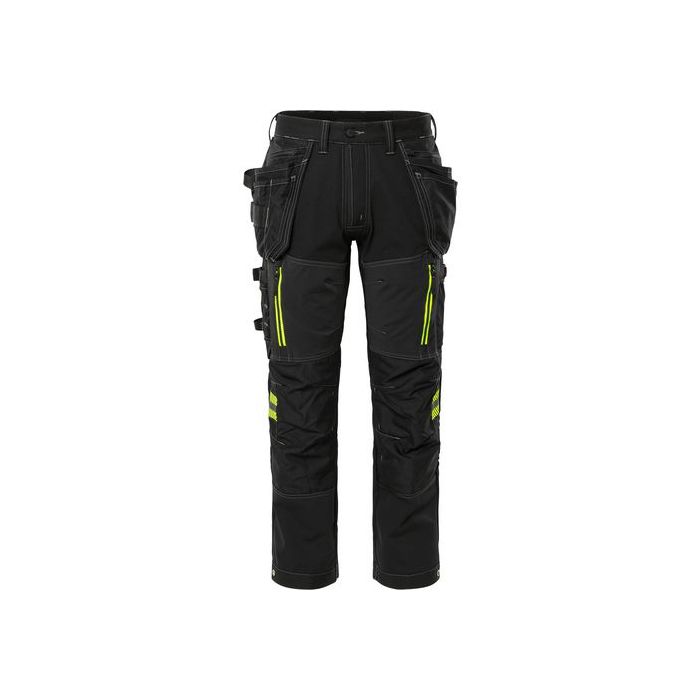 Hantverkarbyxa stretch 2566 STP Avancerade hantverkarbyxor helt i 4-vägs stretch för optimal rörelsefrihet. Arbetsbyxa av slitstarka stretchmaterial med extra bekväm stretch i midjan och många funktioner. Koncept: Tyresta Teknisk beskrivning 4-vägs stretchmaterial / Slitstarkt ripstop-material med 4-vägs stretch på lår och baksida / Ribbstickat stretchparti i midjan / 2 löst hängande spikfickor i CORDURA® med fickor med dragkedja i ovankant, den ena med 3 mindre fickor och verktygshällor, den andra med extra ficka / D-ring under löst hängande ficka / 2 framfickor / 2 bakfickor med dragkedja / Hammar­hank / Dubbel förstärkt grensöm / 2 lårfickor med dragkedja och ventilationsnät i öppningen / Tumstocksficka i CORDURA® med verktygsficka, pennficka samt knapp och hälla för kniv / Benficka med telefonficka och tumstocksficka / Knäfickor i CORDURA® med öppning inifrån / Knäskydden i knäfickorna kan höjdjusteras / Reglerbart CORDURA®-förstärkt benslut med tryckknappar / Reflexdetaljer / Godkänd enligt EN 14404 tillsammans med knäskydd 124292 (9200 KP) / OEKO-TEX® certifierad. Färg: Svart (F940) Material: Stretch 55% elastomultiester, 45% polyester. Ripstop stretch 88% polyamid, 12% elastan. Vikt: Stretch 218 g/m². Ripstop stretch 260 g/m². Storlekar: C44-C66, C146-C156, D84-D120. Koncept: Tyresta Säsonger: Året runt