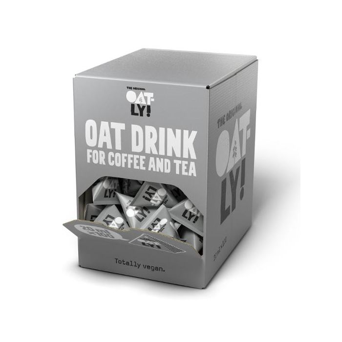 Havredryck anpassad för kaffe och te, i praktiska portionsförpackningar om 2 cl. Havredryck för kaffe och te i praktiska 2cl portionsförpackningar. Perfekt för självservering vid kaffemaskiner, frukostbufféer, kon ferenser och kontor. Levereras i en smidig displaykartong för enkel hantering. Gjord på svensk havre och producerad i Landskrona. Kan förvaras i rumstemperatur upp till flera månader. 2 cl x 100 st Svensktillverkad