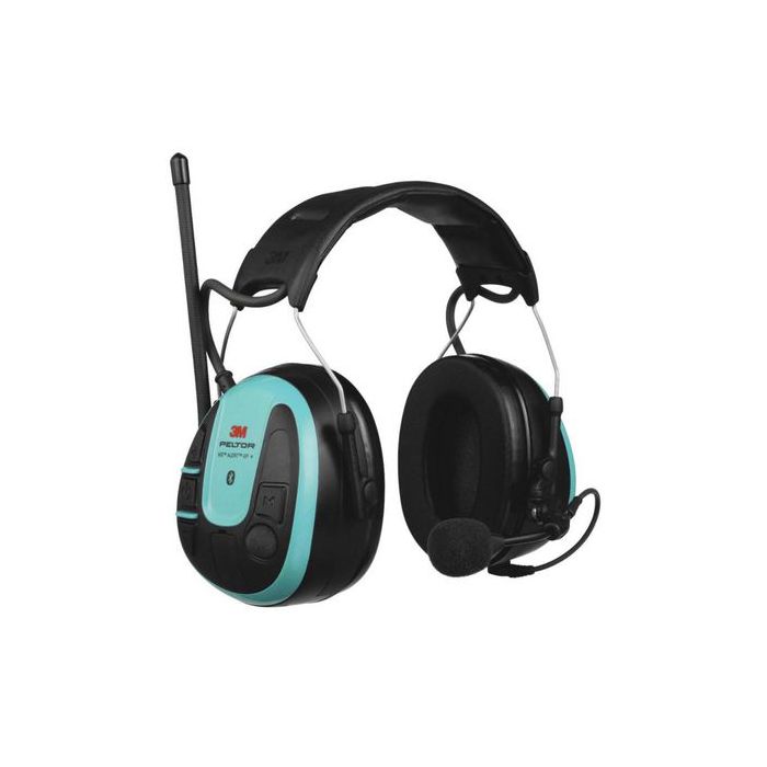 3MT PELTORT WST ALERTT XP+ FM-radioheadset, WS7, appstöd, FM-radio med RDS, MultiPoint Bluetooth, turkos.Bluetooth® MultiPoint-hea dsetet med brusreducerande mikrofon som ansluts till en mobilapp för att enklare ställa in och justera headsetet. Headsetet hjälper till att skydda dig mot farligt buller, men det gör det också enkelt att ringa med båda händerna fria i bullriga miljöerFM-radio m ed RDSBluetooth® MultiPoint-teknikBullerreducerande bommikrofonAnslut till en kompatibel mobilapp för att enklare ställa in och j ustera ditt headsetOTA (trådlös uppdatering av fast programvara)Push-to-listen-funktionen (tryck-för-att-lyssna-funktionen) sänker omedelbart volymen så att du kan höra ljud i omgivningenRöststyrt menysystemAutomatisk avstängning: Headsetet stängs av efter fyr a timmars inaktivitet för att spara batteriVarning vid låg batterinivåUtbytbara hygiensatserUSB-C-laddningskontakt