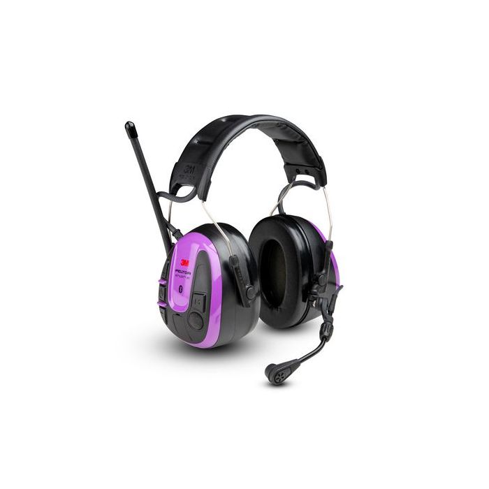 3MT PELTORT WST ALERTT XPI+ FM-radioheadset, WS7, appstöd, FM-radio med RDS, MultiPoint Bluetooth, WAP, lila.Bluetooth® MultiPoint-headsetet med brusreducerande mikrofon som ansluts till en mobilapp för att enklare ställa in och justera headsetet. Headsetet hjälper till att skydda dig mot farligt buller, men det gör det också enkelt att ringa med båda händerna fria i bullriga miljöer.WAP Work Audio-profilMultifunktionsknappAPS Audio Pan-inställningFM-radio med RDSFM-radiomottagare av högsta kvalitetBluetooth® MultiPoint-teknikBrusreducerande bommikrofonAnslut till en kompatibel mobilapp för att enklare ställa in och justera ditt headsetOTA(trådlös uppdatering av fast programvara)Push-to-listen-funktionen (tryck-för-att-lyssna-funktionen) sänker omedelbart volymen så att du kan höra ljud i omgivningenAutomatisk avstängning: Headsetet stängs av efter fyra timmars inaktivitet för att spara batteriVarning vid låg batterinivåUtbytbara hygiensatserUSB-C-laddningskontakt