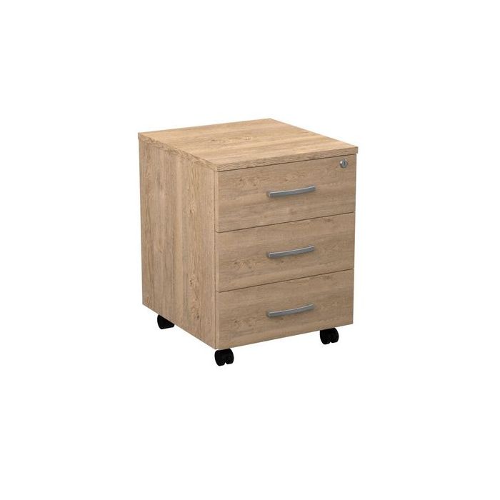 Hurts på hjul med centrallås, där två unika nycklar följer med, samt pennfackslåda. Pennfacket är löst och kan lyftas ur för att använda lådan som en vanlig låda. Två av hjulen är låsbara. Lättrullade lådor med rullskenor och lådstopp. Hurtsen är gediget konstruerad. Hurtsen består av tre lika stora lådor. Materialet är stryktåligt laminat. Handtag i borstad aluminium. 18 mm rygg för att ytterligare stärka konstruktionen till en stabil hurts.
