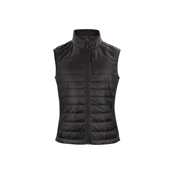 En snygg lättviktsväst för dam som uppfyller högt ställda miljökriterier. Hybridväst för dam som uppfyller både högt ställda miljökriterier från bluesign© – läs mer på bluesign.com – och är miljömärkt med Oeko-Tex Standard 100. Västens lite kortare skärning gör den bekväm att bära som mellanlager. Quiltad padding. Bröst- och sidficka med blixtlås.