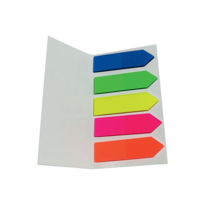Pack of 5 Film Index, Arrow shaped. 12x42MM per pad, 25 sheets per colour. Blue, Green, Yellow, Pink & Orange