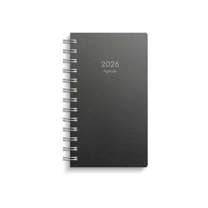 Kalender 2026 från Burde. Format: 95x170 mm. Layout: Dag/sida. Timindelning 7-19. Kalendarium: 2025-12-22