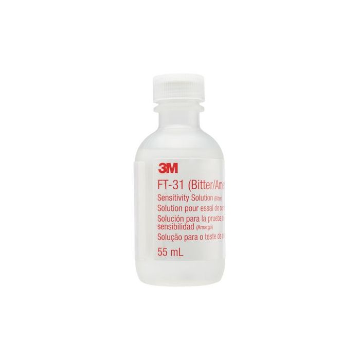 3MT känslighetslösning används för att testa andningsskyddsbärarens känslighet för en söt eller bitter lösning. För användning med 3MT Kvalitativt passformstests utrustning FT-10 (Söt) and FT-30 (Besk)Testutrustning och tillbehör är utformade för att hjälpa dinorganisation att uppfylla lagstadgade krav på passformstestning av tättslutande andningsskydd. Känslighetslösningar används för attidentifiera om testmottagaren kan upptäcka lösningen innan man bär andningsskydd.Känslighetslösning med bitter smak för passformstestningAnvänder en testlösning av denatoniumbenzoat för att producera en mycket bitter smak55 ml flaska55 ml flaskaAnvänds för att testa om bäraren kan detektera passformstestning. Två tillgängliga eftersom en liten andel av befolkningen inte kan upptäcka natriumsackarin i vilket fall den beska lösningen bör användas (eller vice versa)Endast för yrkesmässigt bruk3MT rekommenderar att användare testas med ansiktspassning innan de använder andningsskydd och att det görs regelbundet som en del av deras andningsskyddsprogramFölj alla tillämpliga nationella och andra riktlinjer med avseende på ansiktspassningstestning. Om inte tillgängligt, se ISO 16975-3 eller kontakta 3MT