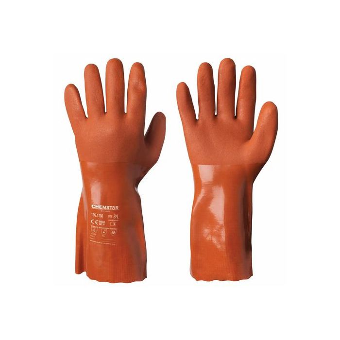 Kemikalieresistenta handskar i vinylInterlockfoder i bomull. Smidiga och mjuka med foder utan sömmar för hög komfort. Sanitized®-behandlade för att förhindra bakterietillväxt och ge en fräsch känsla.Lämpliga för medeltungt till tungt, vått arbete och kemikaliehantering (enligt test),inom fiskeindustri, tillverkningsindustri, jordbruk, sanering och underhåll.CE Cat.IIIGodkänd enligt: ENISO 21420:2020 + EN 388:2016+A1:2018 + EN ISO 374-1:2016+2018/Type B + AQL 0,65Material: Vinyl/PVCFoder: Interlockstickad bomullFärg: OrangeGrepp: Torrgrepp, Våtgrepp, OljegreppLängd: 30 cmStorlek: 8-11