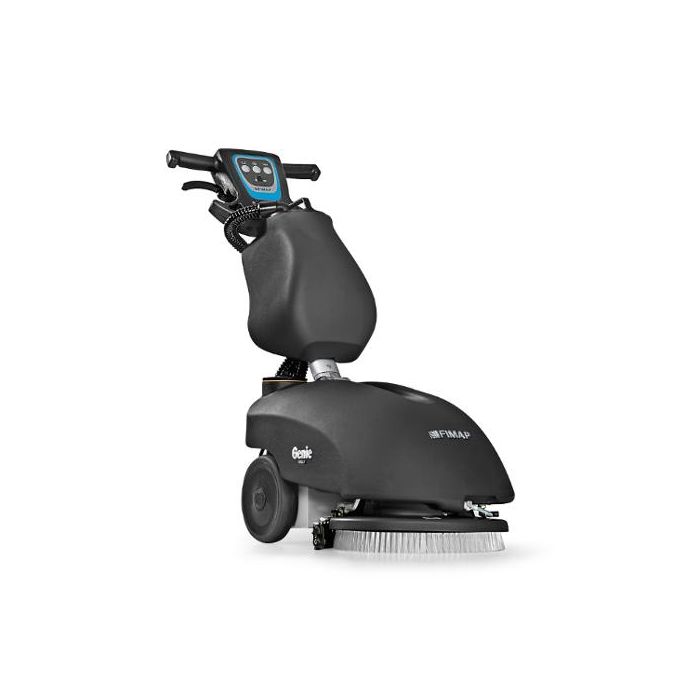 Genie når enkelt trånga utrymmen och under möbler, och har ett fällbart handtag för smidig förvaring. Genie är en kompakt och användarvänlig skurmaskin som kombinerar skurning, torkning och desinficering i ett enda moment. Med en innovativ design och högpresterande komponenter är Genie det perfekta valet för små och trånga utrymmen. Maskinen finns i både elektriska och batteridrivna versioner, vilket gör den flexibel och anpassningsbar för olika miljöer. Den parabolformade sugskrapan säkerställer perfekt skurning och torkning även i kurvor och längs väggar. Genie lämnar golvet torrt, vilket minskar risken för halkolyckor. Enkel start med få steg: fyll på vatten och rengöringsmedel, sätt på borsten och sänk ned sugskrapan