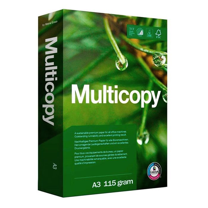 Multicopy är ett lättanvänt, hållbart premium-papper som är idealiskt för alla typer av kontorsmaskiner och perfekt för förtryckning. Varje ark dammsugs för att förhindra att damm orsakar stopp eller andra problem.