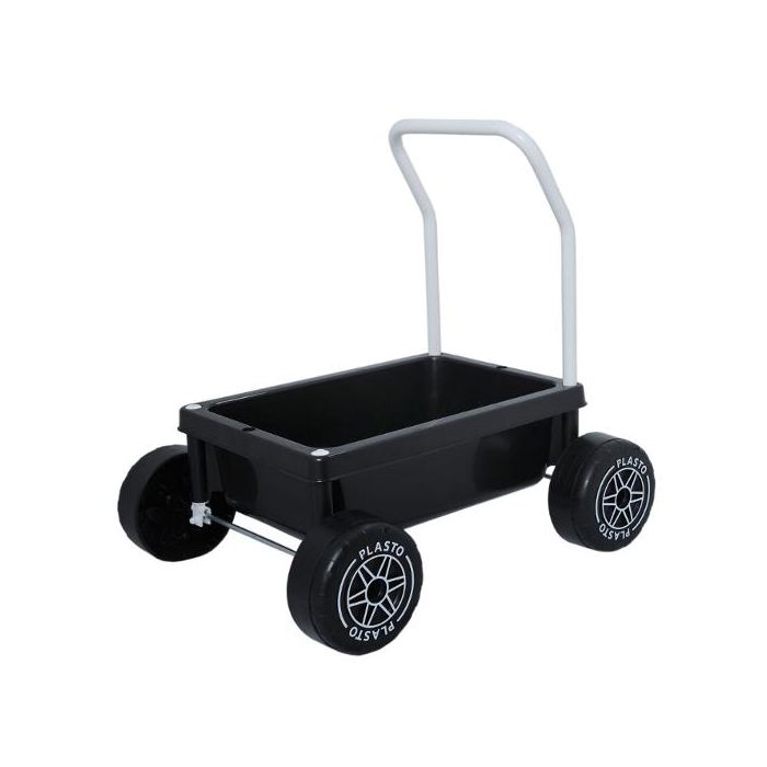 Trygg första steg – stabil lära-gå-vagn med broms! Plasto lära-gå-vagn är den perfekta hjälpen för barnets första steg. Med stabil konstruktion, tysta hjul och justerbar broms ger den både säkerhet och komfort. Passar för inomhuslek och hjälper barnet att utveckla balans och motorik på ett tryggt sätt. Höjd: 48 cm Tillverkad i Finland Monteras av en vuxen person Rekommenderad ålder: från 10 månader
