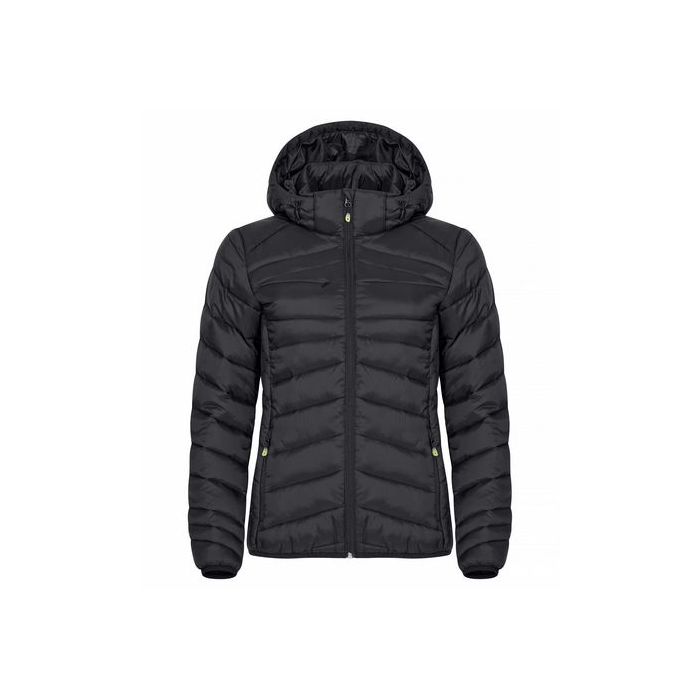 En varm och lätt jacka med dunliknande vaddering. Tillverkad av 100% återvunnen polyamid. Avtagbar huva, tre ytterfickor med dragkedjor och två innerfickor. Elastiskt avslut i nederkant samt ärmar. Utrustad med färgade zippullers, hörlurslösning och dragkedja.