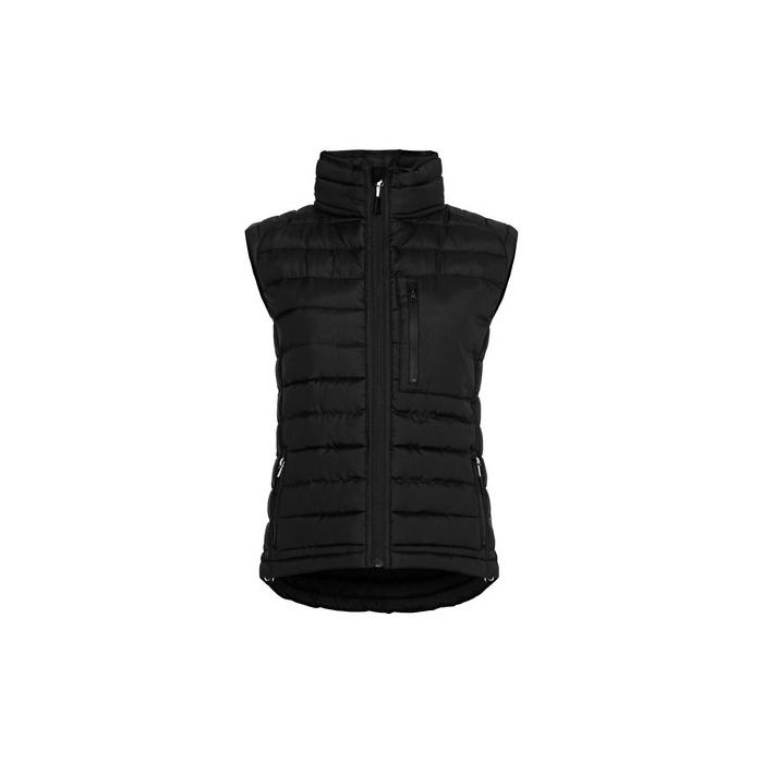 Lättvadderad quiltad damväst i återvunnen polyester. Vindtät och vattenavvisande, yttertyget har en PFC fri ytbehandling med Bionic Eco. Två sidfickor och en bröstficka.