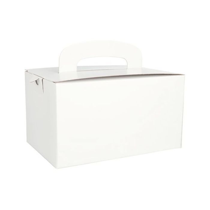 Optimera din måltidsupplevelse med den praktiska pappersboxen med handtag! Med dimensioner på 12,5 cm x 15,5 cm x 22,5 cm och tillverkad av starkt papper med en styrka på 424 gr/m², är denna vita box den ultimata lösningen för att bära din lunch eller transportera dina delikata bakverk. Med bekväma handtag för enkel hantering är det dags att göra din mattransport både praktisk och stilfull!